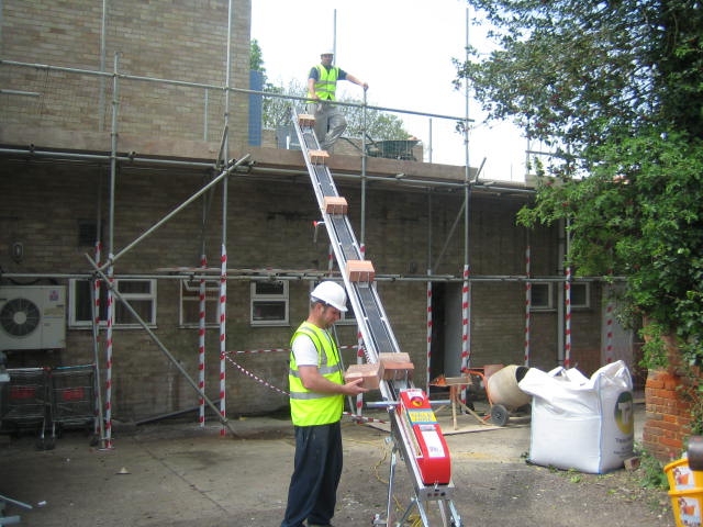 Used to move roofing materials such as tiles and bricks up to roof’s and scaffolding. The clever conveyor system is reversible to also enable tiles to be safely lowered. The machine is controllable from both the top and bottom of the conveyor.
