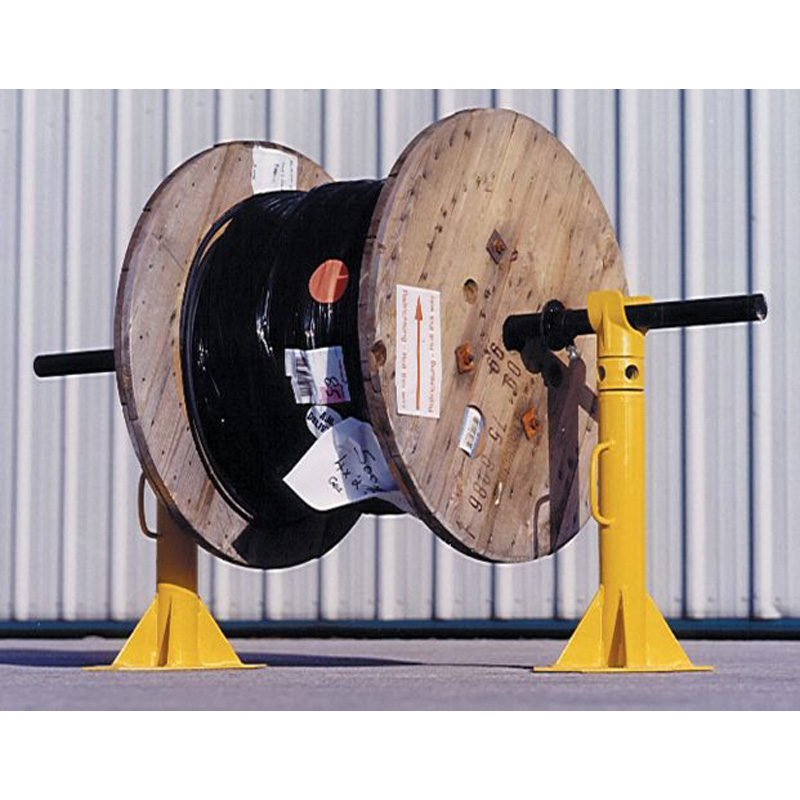 Simple and effective means of lifting and dispensing cable from large reels. Includes 2 jacks and a central shaft.