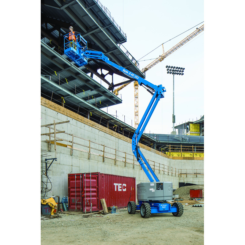 A highly versatile access platform ideal for general outdoor site and industrial uses. 4×4 and large foam filled tyres suitable for use on all terrains .May be operated from the platform or the ground.