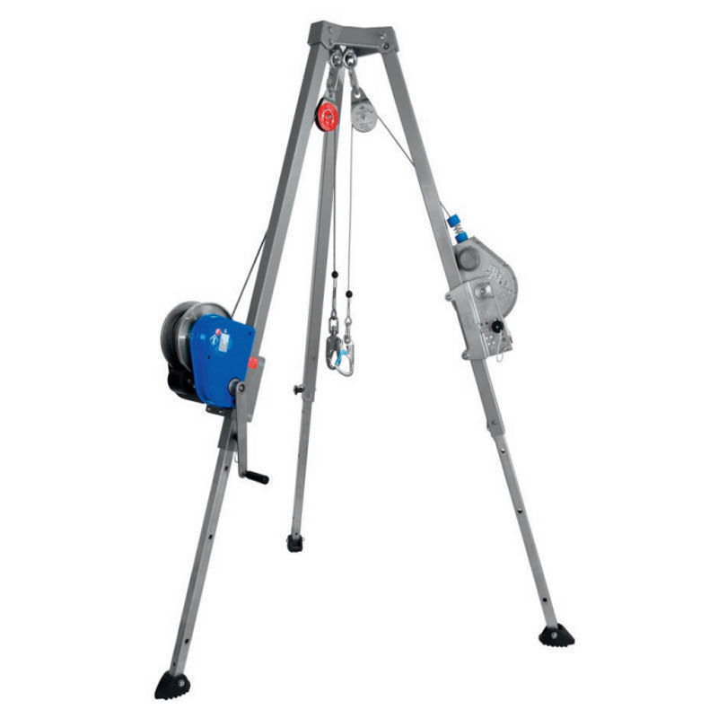 Designed to safely lower personnel and equipment down shafts, using a manual winch mounted on the tripod. The tripod also uses a fall arrest mechanism for extra safety.