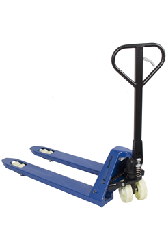 A lift facility built into the handle combined with a 360° steering lock which makes the pallet truck highly manouverable and user freindly. Suitable for moving pallets of up to 2.5 Ton with ease, not suitable for uneven ground.