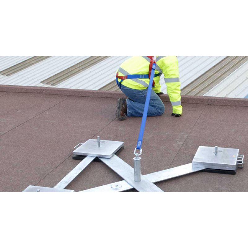 Also known as a mobile man anchor, used on flat roofs where there is no guardrail. Uses a combination of weights to provide a stable point or restraint and fall prevention. Used in conjuction with restraint lanyards or a fall arrest block.