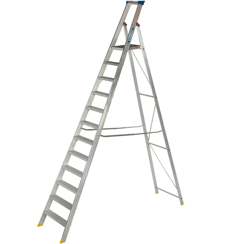 Constructed from heavy-duty aluminium for stability and portability. large platform, heavy duty internal spreaders, rear frame cross tubes and large slip-resistant feet. Approved to the latest EN131 standard.