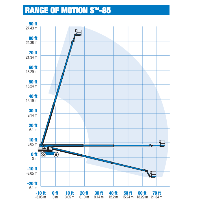 Telescopic booms offer greater horizontal outreach then any other type of aerial platform – Perfect for areas with limited access in construction and industrial applications. Genie telescopic booms are also designed for productivity with the traction and drive speed you need to get around the job site and to the work area.